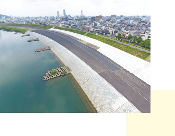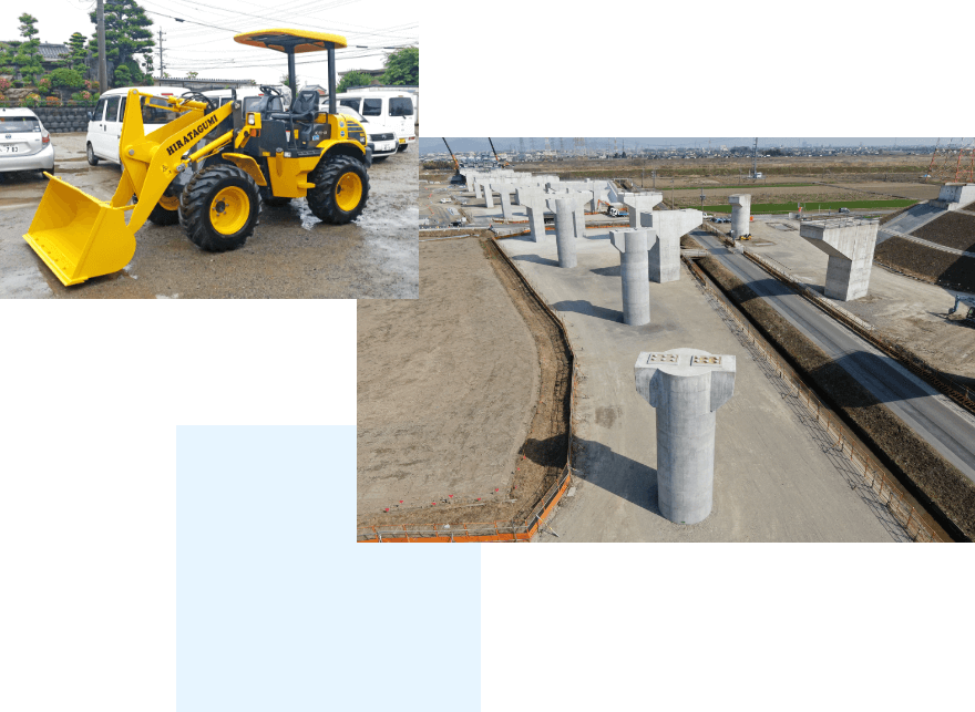 ⼟⽊、舗装⼯事等、建設に関する事業を⾏っています。官公庁・⺠間を問わず河川⼯事、道路⼯事、宅地造成を⼿がけ、地域になくてはならない社会インフラの整備を担っています。